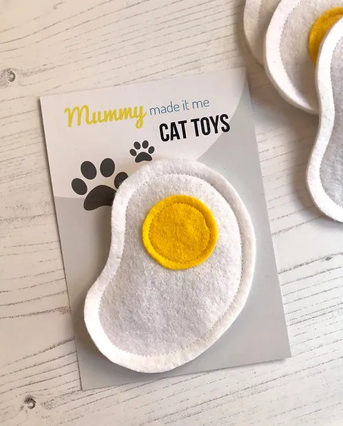 Get your feline friend "eggcited" with this novelty felt food cat toy! Made with premium organic cat nip, this fried egg toy will keep your cat entertained for hours. No need to "yolk" around!