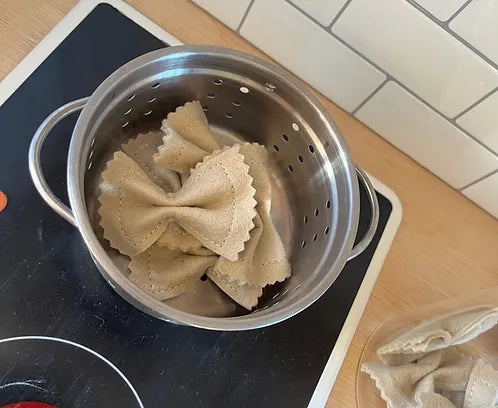 Have fun with these felt pasta bows as you whip up some imaginary meals! Perfect for pretend cooking, these plain pasta bows come in a gift box for easy storage.